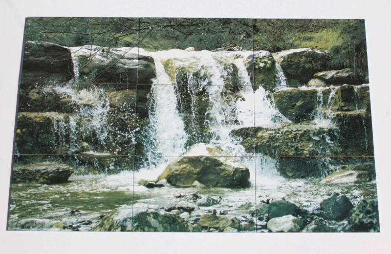6-teiliges Fliesenbild auf weiß, glänzenden Fliesen.