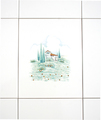 6-teiliges Fliesenbild auf weiß, glänzenden Fliesen